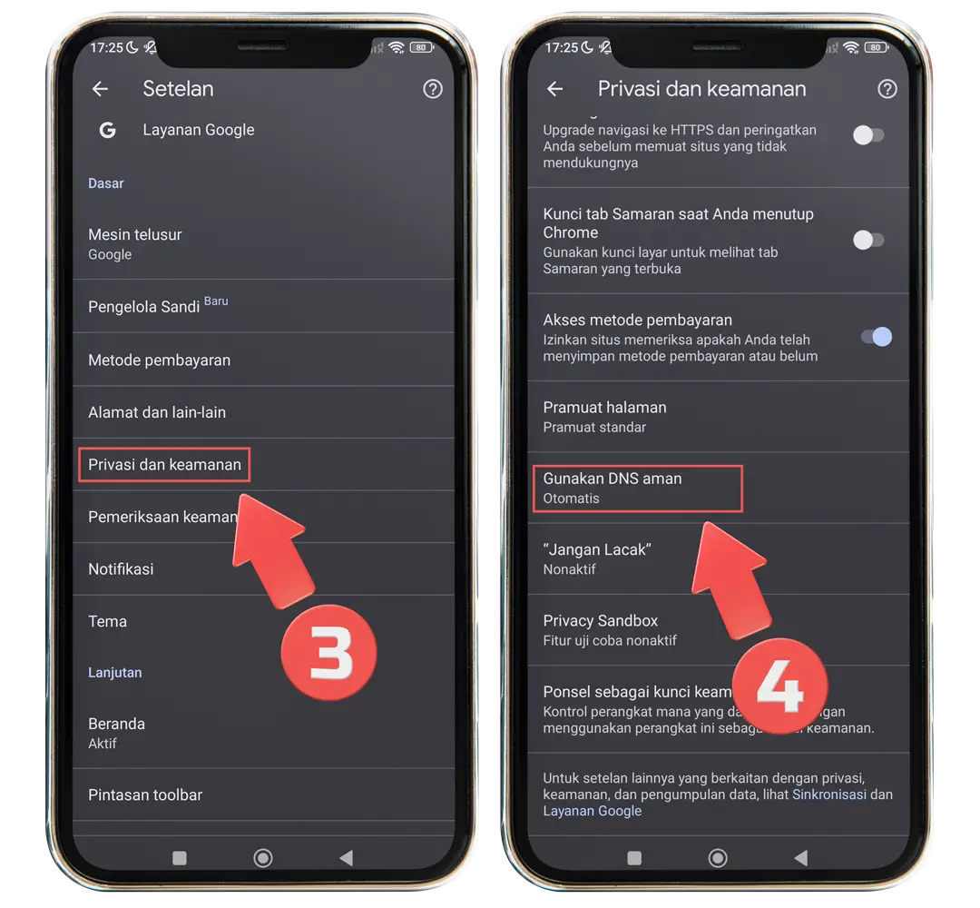 KLik Sesuaikan dan pilih Google (public DNS) atau Cloudflare (1.1.1.1)
